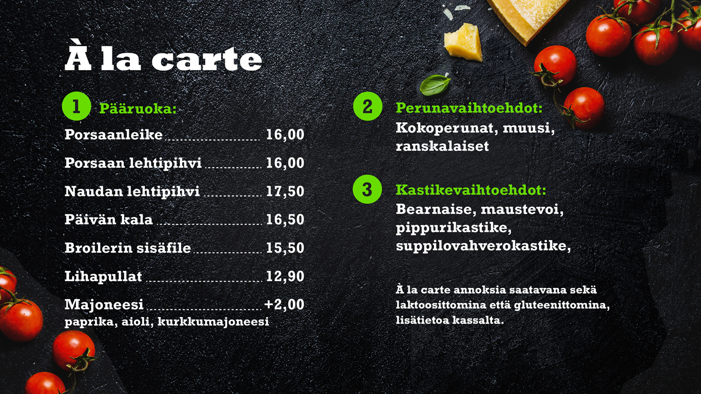 lämpimät ruoat ja jälkiruoat. Ota rohkeasti yhteyttä niin järjestetään onnistunut tilaisuus!